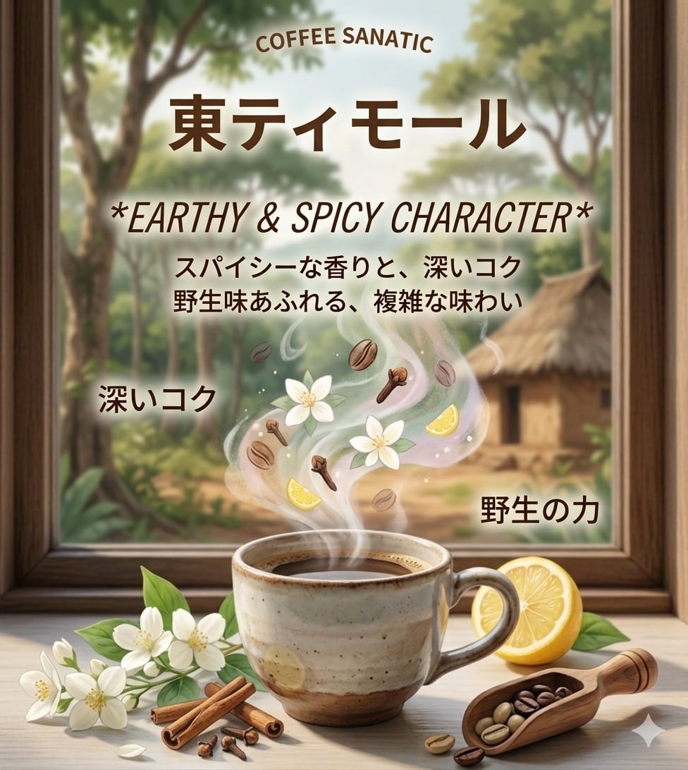 この豆が持つ最大の特徴は、一口飲んだ瞬間に広がるスパイスのような複雑な香りと、大地を思わせるどっしりとしたコク。